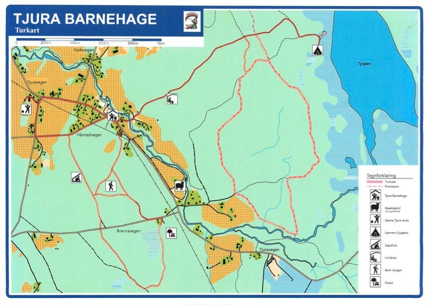 Her ser dere et kart som viser turstedene vi ofte benytter oss av: